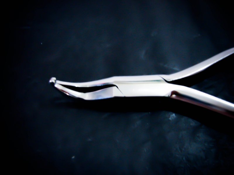 Pinza de aplicación universal en la técnica fija. Gracias a las puntas delgadas salientes por un lado, estos alicates son apropiados también para la elaboración de bandas individuales para incisivos.